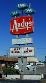 A trademark of the Andy's experience is the menu, which has one big bite taken out of the corner.