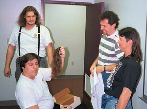 Colin Toenjes donating his ponytail to Locks of Love 3/4