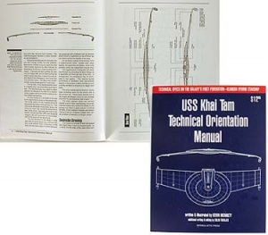 Technical ManualIn 1993, the members had the basic idea to write a technical manual for the Khai Tam as a way to "sell" the idea to Starfleet to officially sanction this non-canon original design for a Trek-Universe starship. The problem was that no one had the time or resources to work on the project. In April of 1993, Kevin McNulty joined the Khai Tam and offered to help. A stay-at-home-dad at the time, McNulty had the time to work, coupled with writing and computer illustration experience. He, the Khai Tam's Chief Engineer, Colin Toenjes, and other club members began work on the book later that year.The 92-page USS Khai Tam Technical Orientation Manual was completed in six months. Being well satisfied with their work, the ship thought that perhaps they may be able to sell it at Star Trek Conventions via established dealer channels. In early 1994, Kevin and Colin approached Mike Kott of Intergalactic Trading Company with a rough draft of the book. Not only was Kott interested in selling it, he offered to publish it! This was the crowning achievement of the design team, and a published, bound, and autographed copy was sent off to Starfleet in June of 1994. Shortly thereafter, approval was given for other chapters to select the Qapla'-class starship for their own chapters. Autographed copies of the book have been given to crew members, Trek stars, and Trek designer Michael Okuda. The book can still be purchased through Interglactic Trading and also through some auction and book sites. Googling the title produces several interesting links even to this day.The game Khai Tam Clue was based largely on the designs in the book, using floor plans from the book for the game board. Custom ModelA model of the Khai Tam was created in 1999 by then-member (now Captain) Richard Graham. Using art from the Khai Tam website and parts from several commercially available model sets, he produced a fairly faithful reproduction of what the ship's designers envisioned. The model travelled extensively with the club and was displayed with pride at many events. It was eventually auctioned at a ship fund raiser in 2002 where it was purchased by none other than long-time Khai Tam Captain, Jon Reddick. ReferencesUSS Khai Tam Technical Orientation Manual