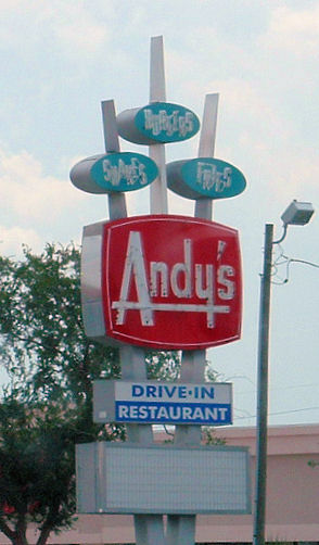 | 09:16, 11 September 2007 | Andys sign.jpg (file) | 48 KB | Andy's Igloo sign. The three spires read "shakes," burgers" and "fries." | 1 | |