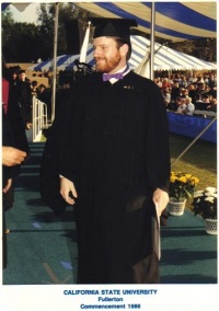 | + | [[Image:kevgrad.jpg|thumb|left|200px|Kevin accepting his diploma in 1986]] | ||