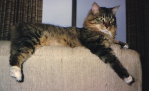 B. J. Honnicat was the first family cat of Clan McNulty. A huge Maine Coon Cat, B. J. ruled lordly over the clan household for several years.